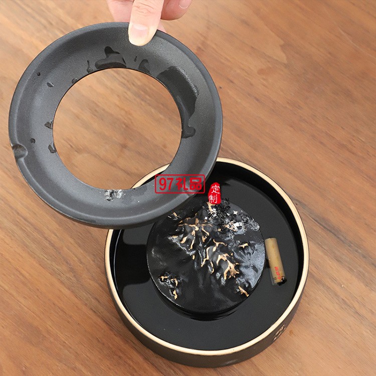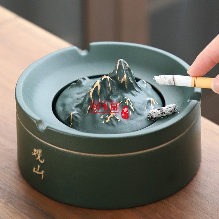 創(chuàng)意輕奢雪茄觀山煙缸中式客廳陶瓷煙灰缸 可定制logo