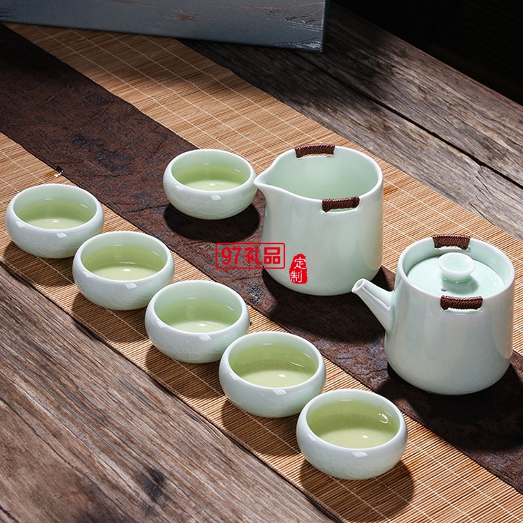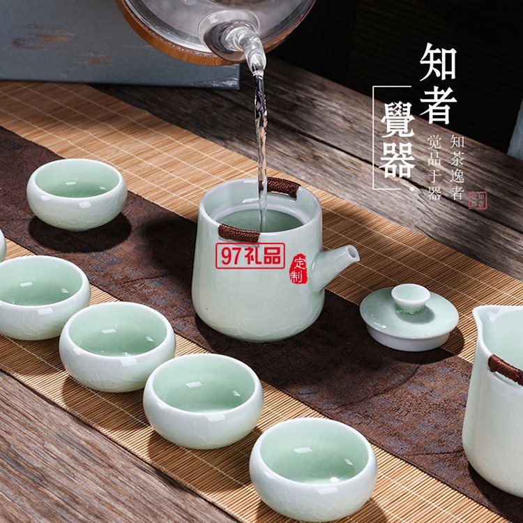 便攜哥窯茶具套裝 居家送禮泡茶八件套 金絲鐵線防燙手可定制LOGO