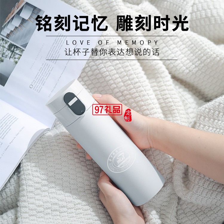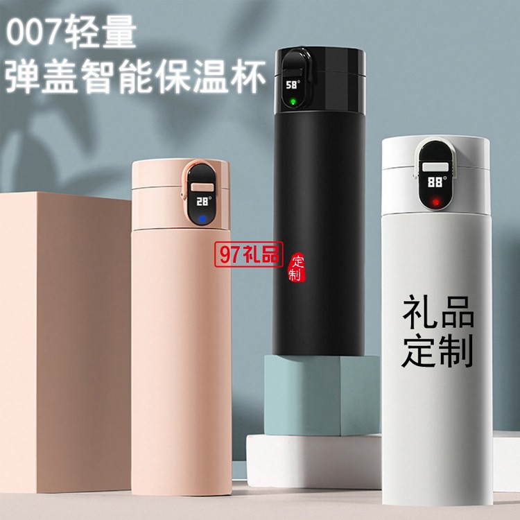 輕量彈蓋保溫杯智能杯溫度顯示304不銹鋼彈蓋保溫杯