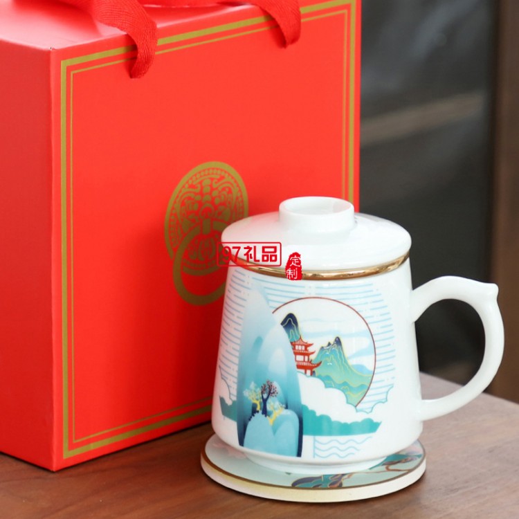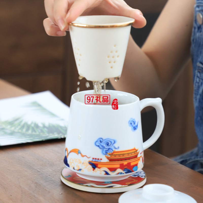 中秋國(guó)慶禮品定制logo國(guó)潮馬克杯帶蓋