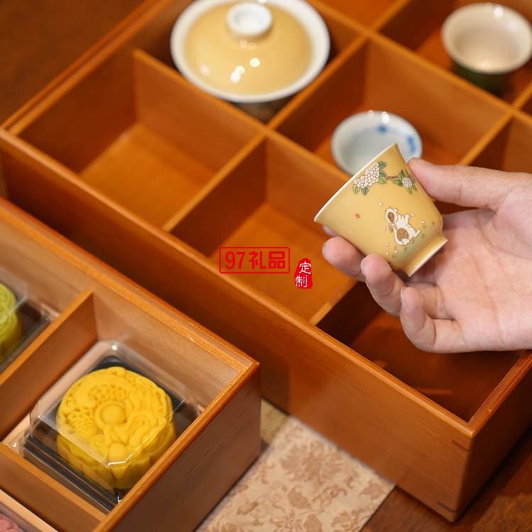 茉莉青提流心×2,  桂花烏龍流心×2,  抹茶青蘋果流心×2 ,紅茶金沙奶黃流心×2, 洛神花蜜果流心×1, 竹制茶點盤×1,  隔板×4,   手提袋×1
