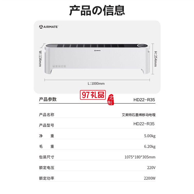 艾美特取暖器踢腳線電暖器節(jié)能 HD22-R35定制公司廣告禮品